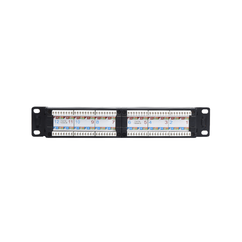 2. Mind a 12, mind a 24 port címkével rendelkezik, és az elülső nagy címke kényelmes az ügyfelek portjának azonosításához; A hátulján van egy kábelkezelő, amely hatékonyan vezetheti a kábelt a befejezési ponthoz.